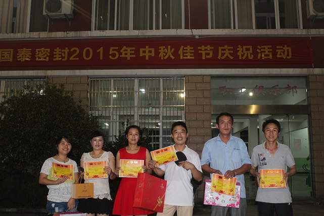 喜迎中秋,共度佳节。中秋来临之际,公司为每位员工发放了一份精品月饼礼盒。9月22日,在员工俱乐部举行了国泰密封2015年中秋娱乐活动,全体员工欢聚一堂,共度中秋佳节?;疃诠ぷ魅嗽本牟呋?,贴近员工心声,准备了乒乓球、投篮球、夹弹子、跳绳等比赛项目。同时还为员工准备了若干灯谜、现场卡拉OK比赛。