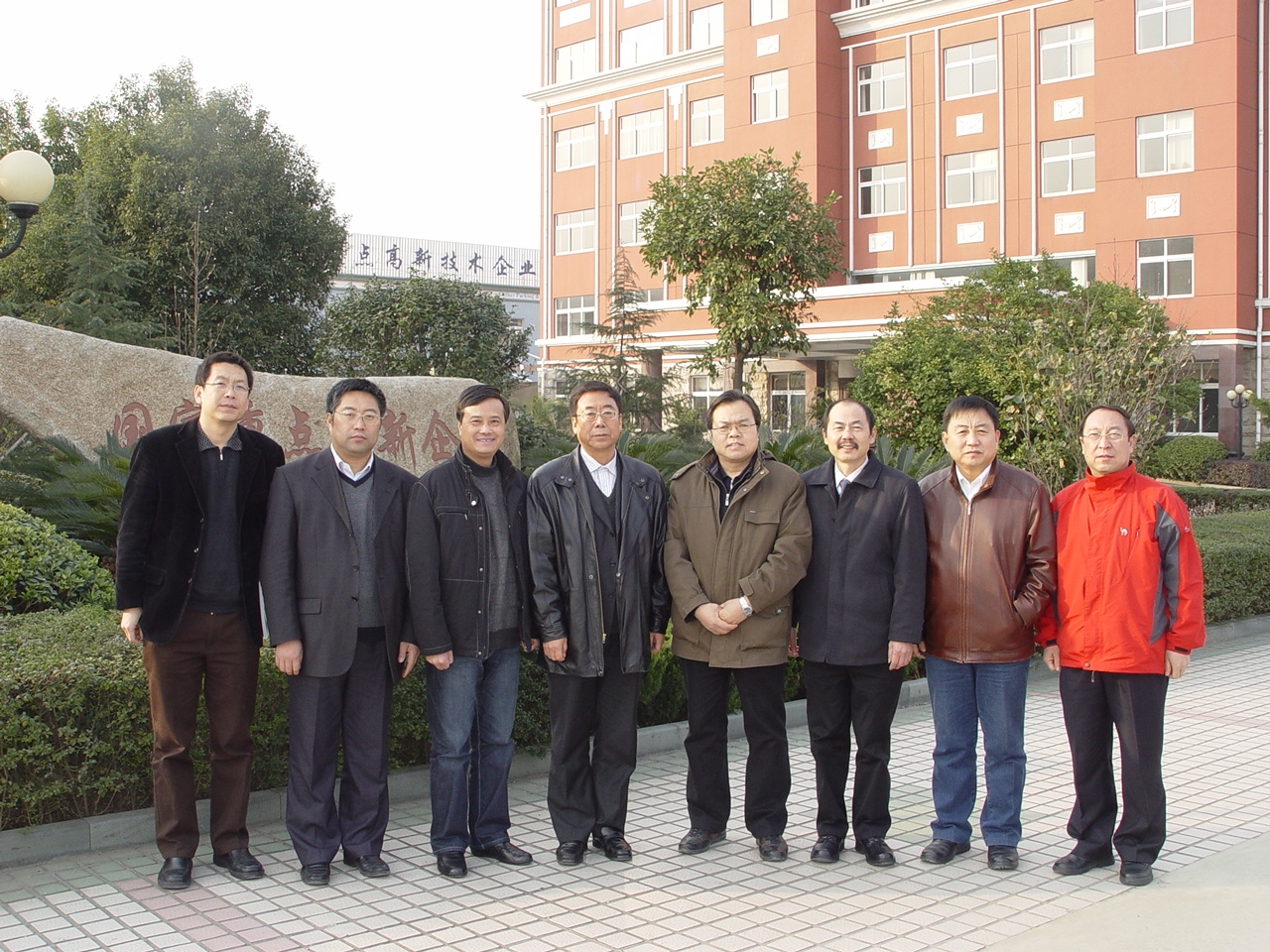 全国非金属矿及制品标委会年会及标准审查会在萧山召开之际,中国建筑材料联合会常务副会长、党委书记孙向远(左4)、中华人民共和国工业和信息化部原材料司司长高云虎(左5)和中国摩擦密封材料协会会长王耀(左7)一行6人于2009年12月19日莅临我公司考察指导,并对国泰密封科技领先、技术创新的战略思想给予了高度评介。