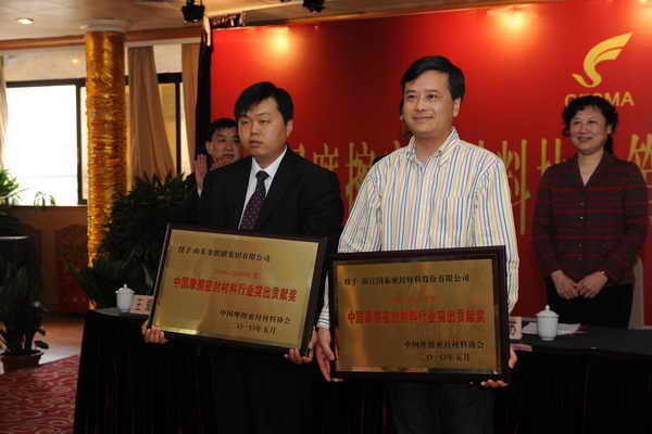 2010年5月6日,在上海举行的中国摩擦密封材料协会5届4次会员代表大会上,我公司获得了2006~2010年度行业先进表彰的5项荣誉:“中国密封材料行业综合实力5强”、孙锦龙总经理、吴益民常务副总经理为“行业优秀企业家”、“中国摩擦密封材料行业突出贡献奖”、“中国摩擦密封材料行业科技进步先进单位”、“中国摩擦密封材料行业工作先进单位”。吴益民常务副总经理出席了表彰大会并代表公司领取了上述荣誉奖项。