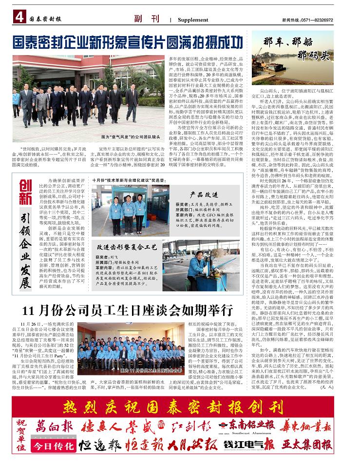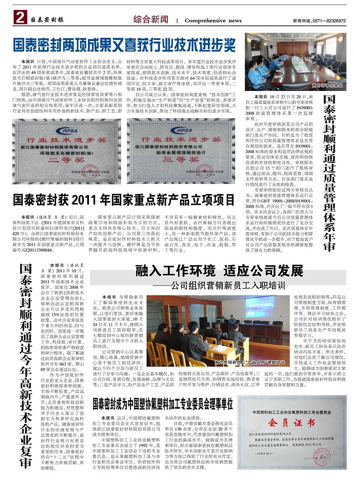 经过近一个月时间紧锣密鼓的筹备,公司企业报《国泰密封报》创刊号于2011年12月6日正式出版发行。