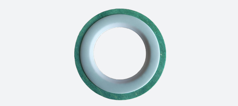 以车削加工的聚四氟乙烯为包覆材料,内衬无石棉橡胶、石棉橡胶、橡胶等软性材料,结合聚四氟乙烯优良的耐腐蚀性能和内衬材料良好的压缩和回弹补偿性能,降低了所需的螺栓预紧压力。是一种经济型的密封垫片。